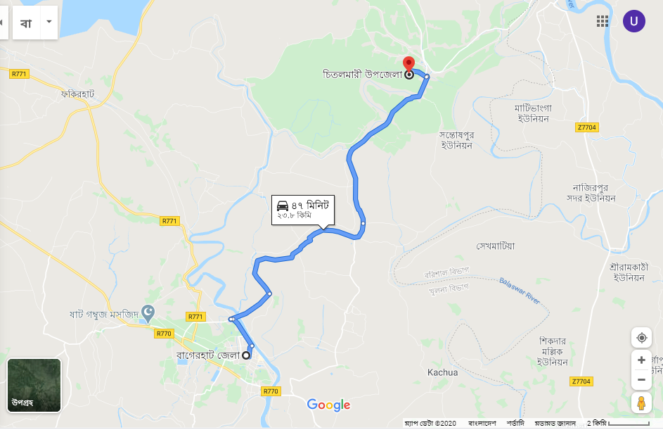 বাগেরহাট জেলা সদর হতে চিতলমারী সড়কপথে দূরত্ব: ২৩.৮ কিলোমিটার